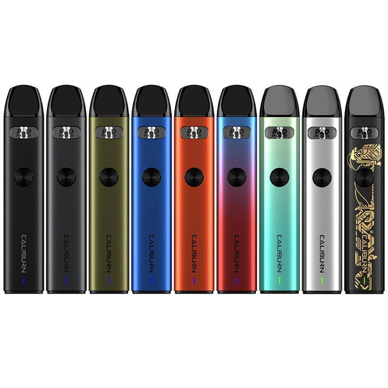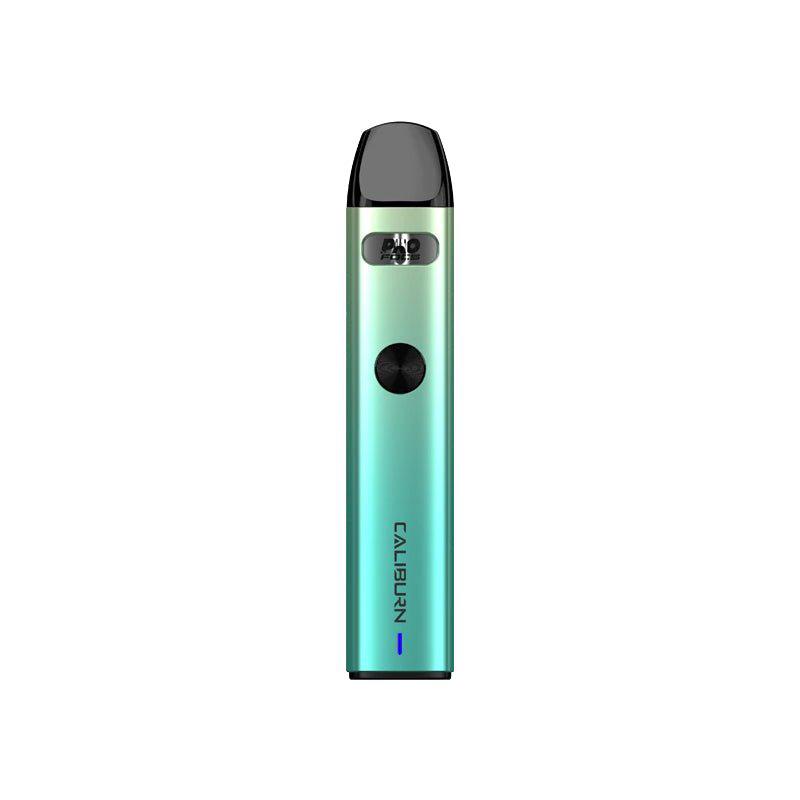 The Uwell Caliburn A2 Kit is a slim pod device that is integrated with a 520mah battery and capable of a maximum power output of 15W. This pod system holds about 2ml of e-liquid and can be used either auto-draw or button activated draw.